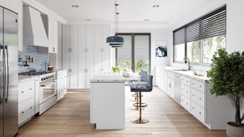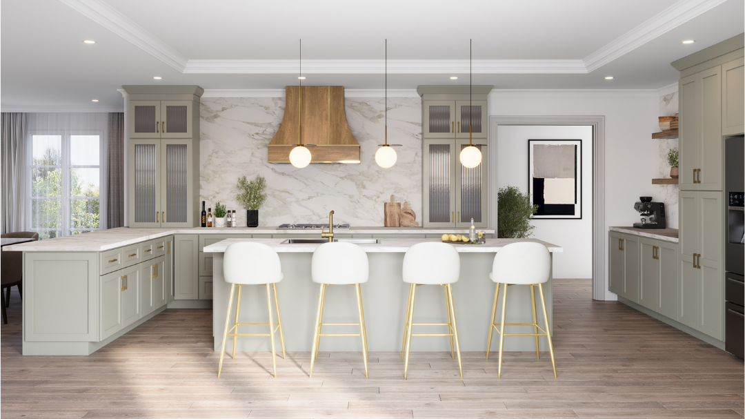 But great design doesn’t stop at cabinet choice—it’s all in the layout details. In this article, we’ll walk through how to design a standout kitchen using Shaker Moss, with clever use of doors prepped for glass, depth modifications, and crown molding to create a layout that’s as functional as it is beautiful.